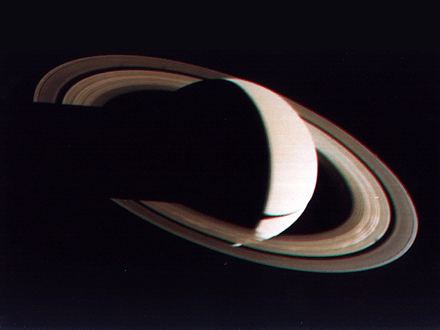A parting view of Saturn taken 4 days after the Voyager 1 spacecraft's closest encounter.