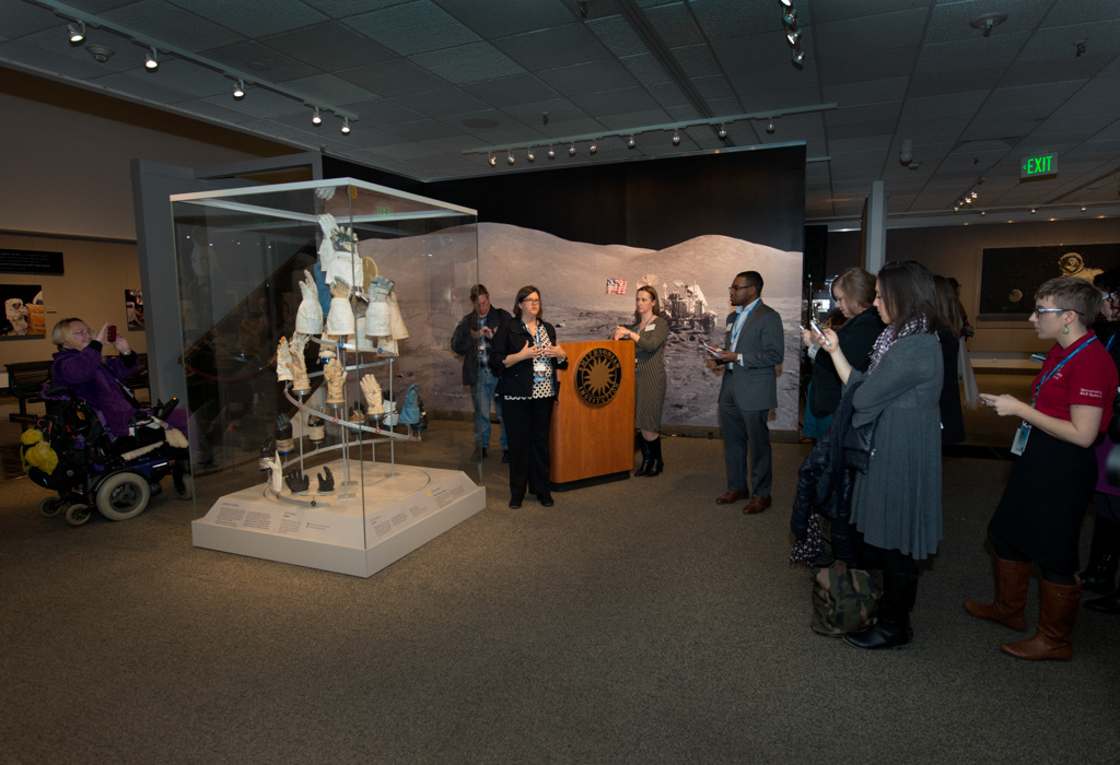 Exhibition designer Richard Bentham and conservator Lisa Young shared with Social participants about the process of creating the glove helix for Outside the Spacecraft.