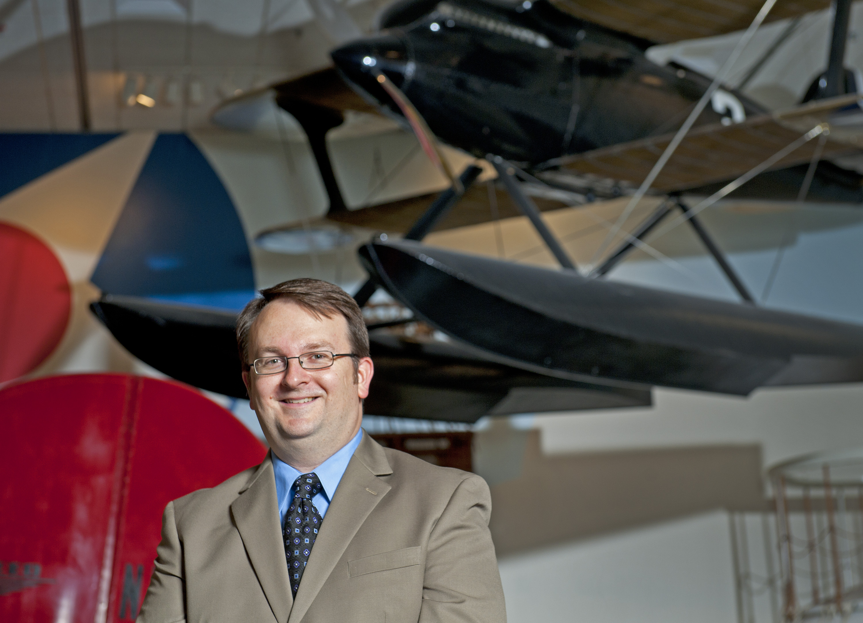 As a curator, Dr. Kinney oversees three collections at the Museum: interwar and World War II American military aviation, air racing, and aircraft propulsion. They number approximately 4,000 artifacts and range in size from a small puddle carburetor from 1911 to military fighter and bomber aircraft from World War II. All three collections document how communities developed high performance aircraft and technology to express their visions of what flight could achieve for humankind in times of peace and war. In addition to collecting, interpreting, and documenting those artifacts, Kinney has been involved in several preservation and restoration projects, including the Curtiss R3C-2 racer, the Curtiss SB2C-5 Helldiver dive-bomber, and the Martin B-26B Marauder Flak-Bait medium bomber.