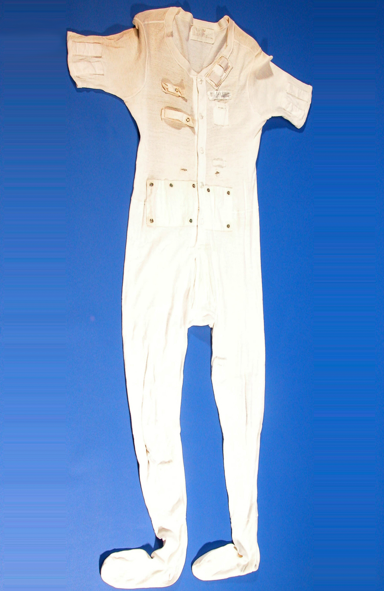 The garment was worn under the inflight coverall garment or alone during non-critical portions of the mission. It was made of cotton knit, with snap buttons up the front, and openings through which the biosensors could be passed.