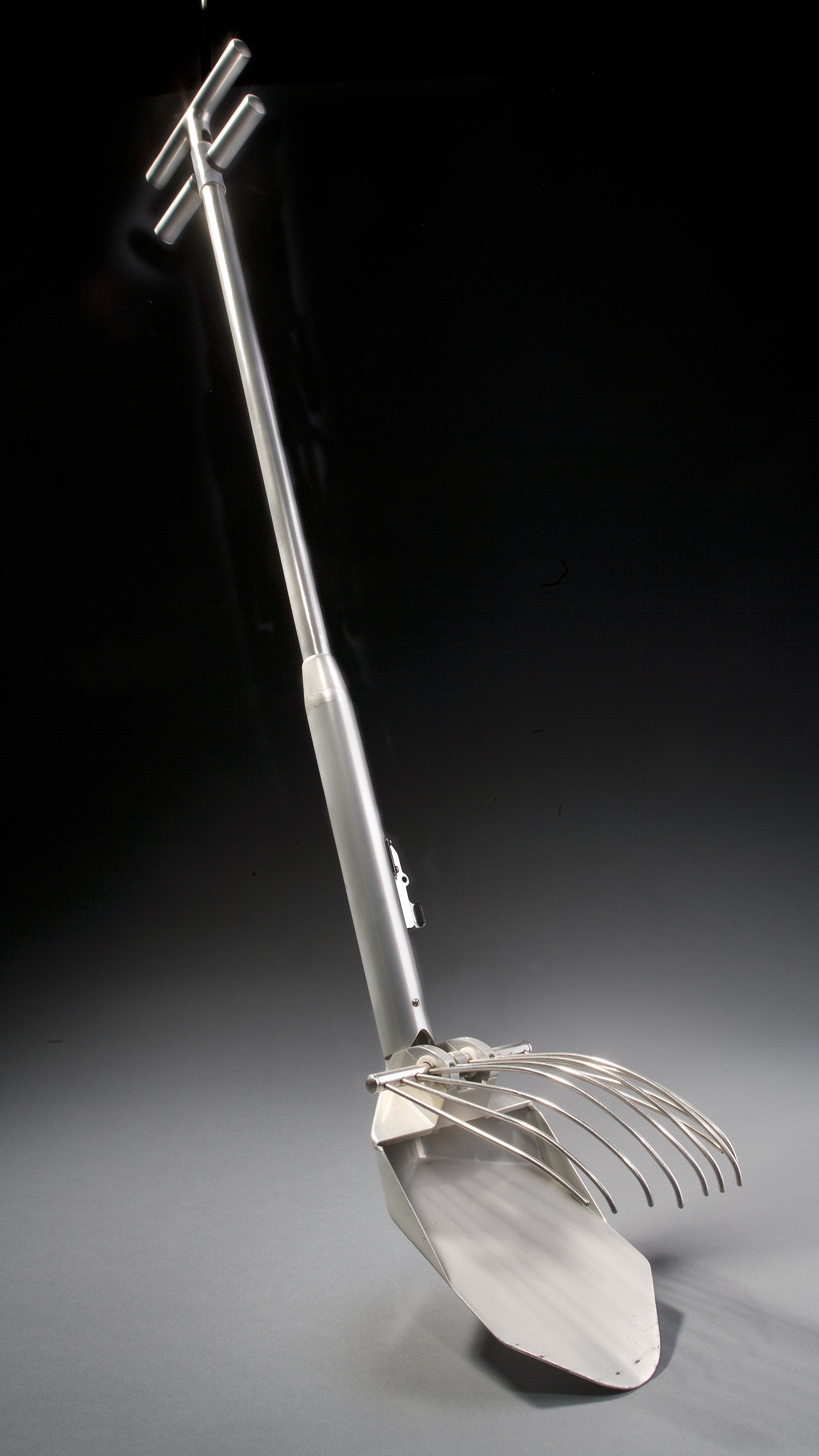 Tongs were used for collecting small rocks (less than 6-10 in. in diameter). Their reach compensated for the difficulty posed by the inflexibility of the astronauts' space suit in bending over to pick up samples. These 32-inch tongs (which replaced a shorter model used on Apollo 11 - 14) were stored in the large tool carrier on the lunar rover. This artifact was used for training.