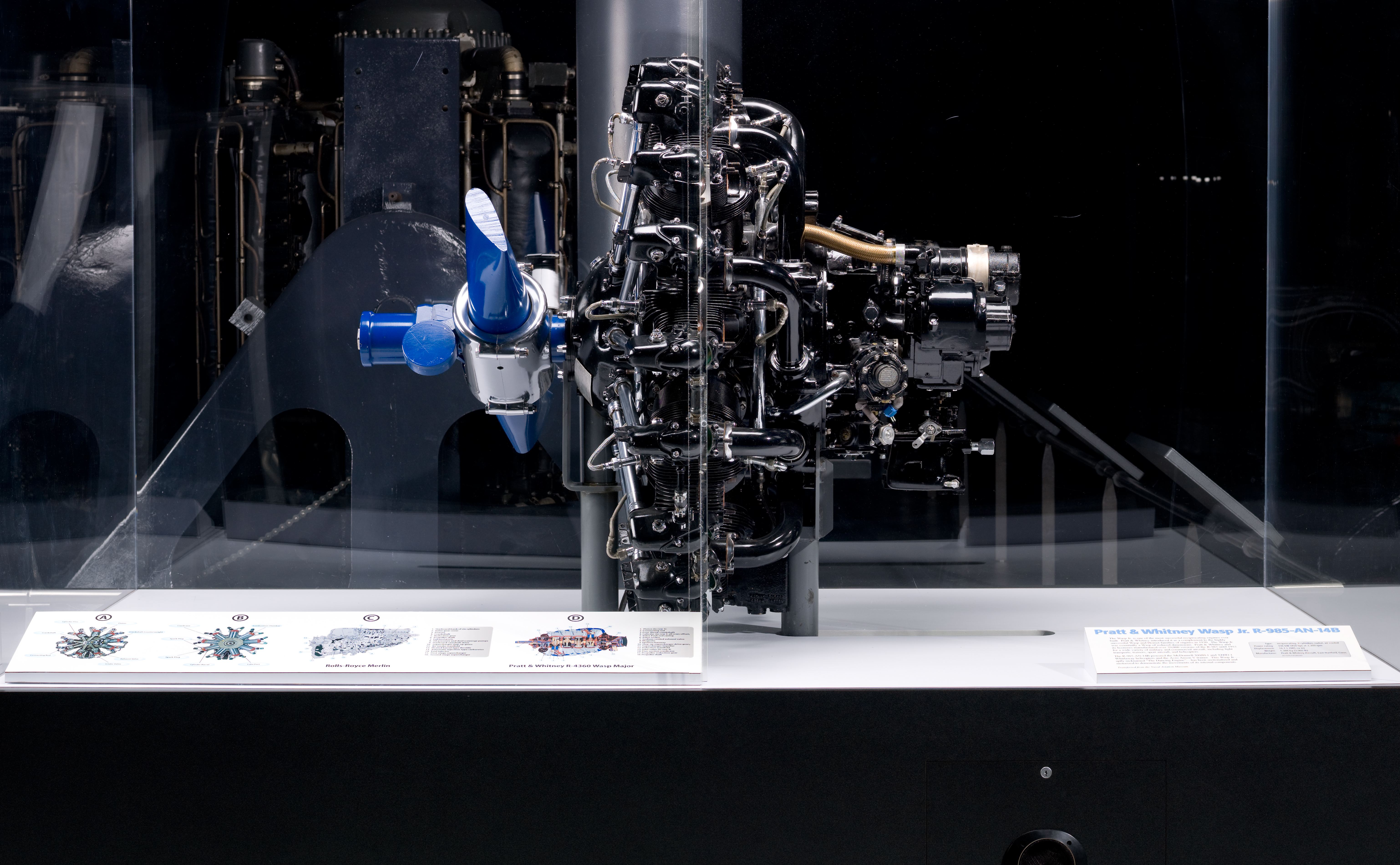 The R-985-AN-14B powered the McDonnell XHJH-1 and XHJD-1 Whirlaway helicopters and the Avro Anson V trainer. This Wasp Jr.-aptly nicknamed "The Dancing Engine"- has been sectionalized and motorized to demonstrate the movements of its internal components.