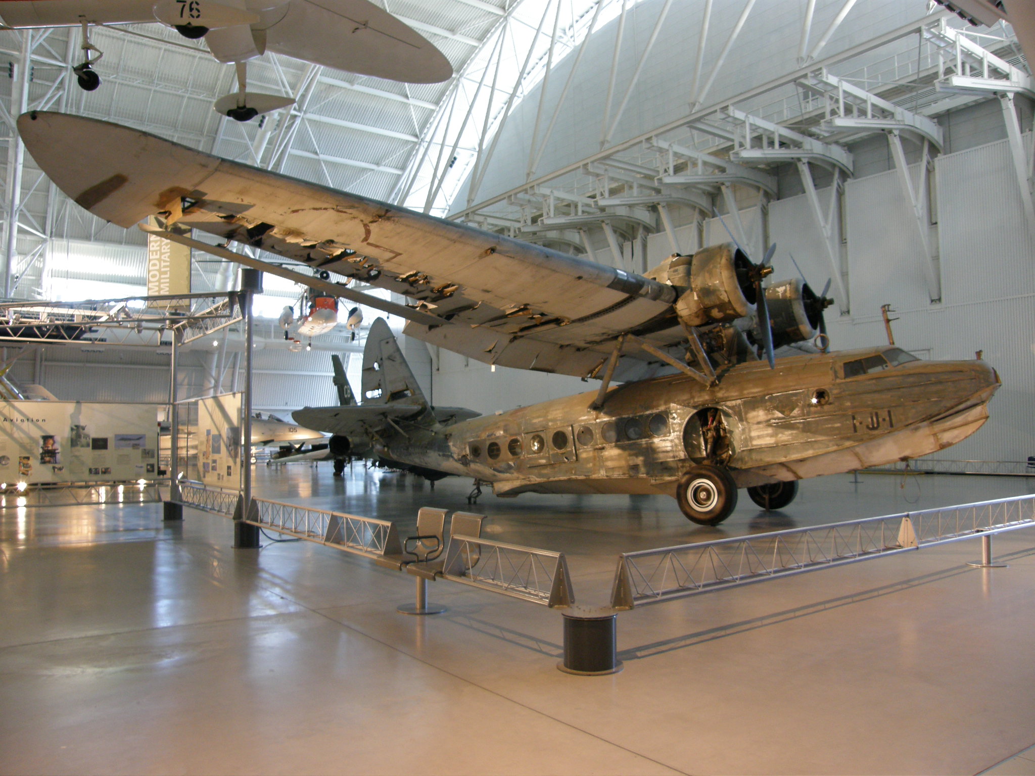 This amphibious seaplane is the only aircraft in the Museum that was at Pearl Harbor, Hawaii, on December 7, 1941. Ten JRS-1s were at the U.S. naval base when the Japanese attacked during World War II. The Navy immediately sent these unarmed utility craft to search for the enemy fleet. The JRS-1 (used 1937-1944) is the military version of the Sikorsky S-43 "Baby Clipper."