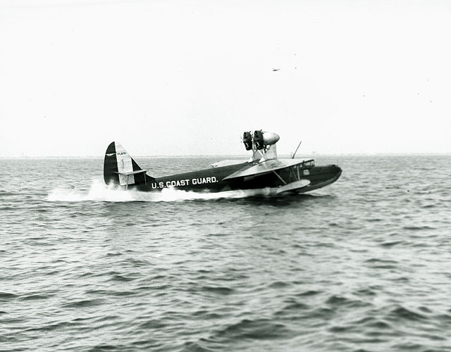 The Coast Guard’s first purpose-built, air-sea rescue aircraft was the Fokker PJ-1 Flying Lifeboat. In smooth waters like this, it could be a very useful tool, but in heavier seas or in situations where a vessel was on fire or someone onboard was severely injured, it could do little.
