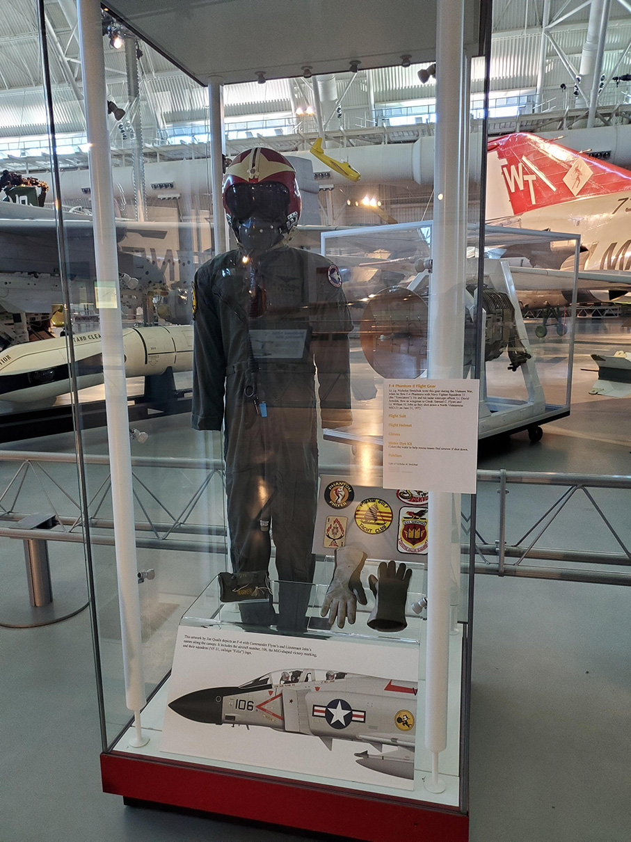 Lt. j.g. Nicholas Strelchuk wore this gear, currently on display at the Udvar-Hazy Center, during the Vietnam War when he flew F-4 Phantoms with Navy Fighter Squadron 31. (Smithsonian Institution/Photo by author)