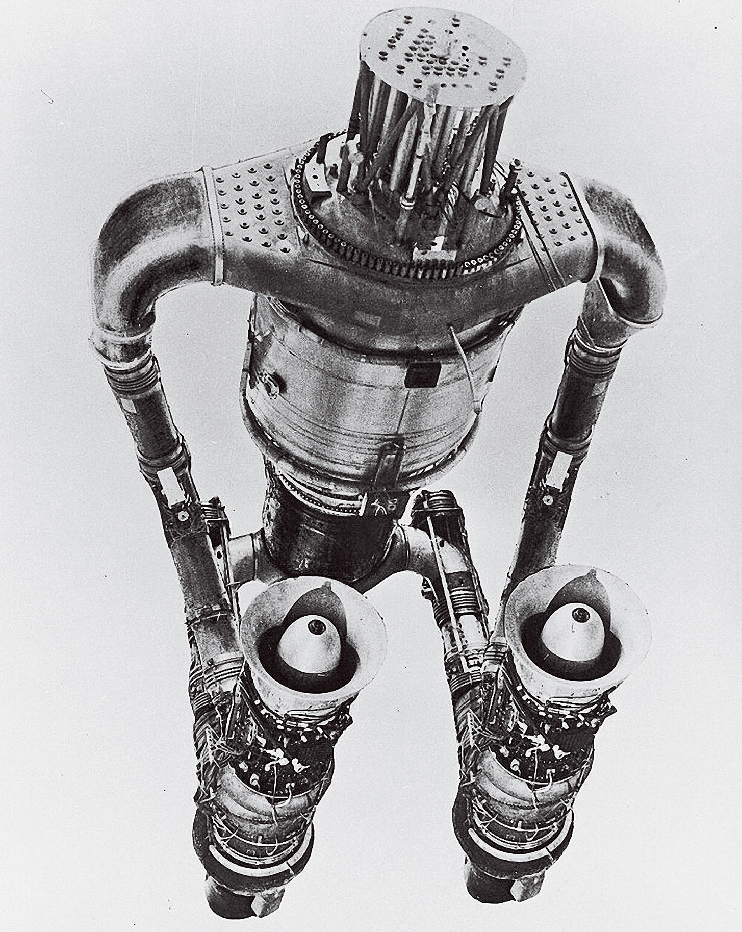General Electric’s Heat Transfer Reactor Experiment 3 was a direct air cycle engine where air from the turbojet’s compressor was routed through the hot reactor core. Designed to generate up to 35 megawatts, it could potentially power two J47 engines for 64 continuous hours.