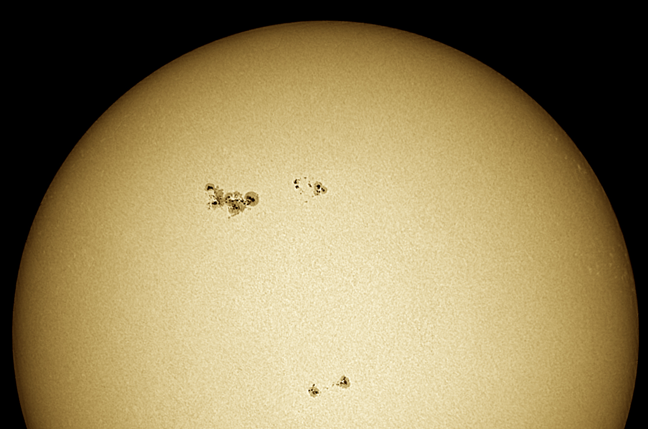 This white-light photograph reveals details of the photosphere, the Sun's surface. Foremost among those features are the sunspots, magnetically active regions created when magnetic loops erupt through the photosphere.