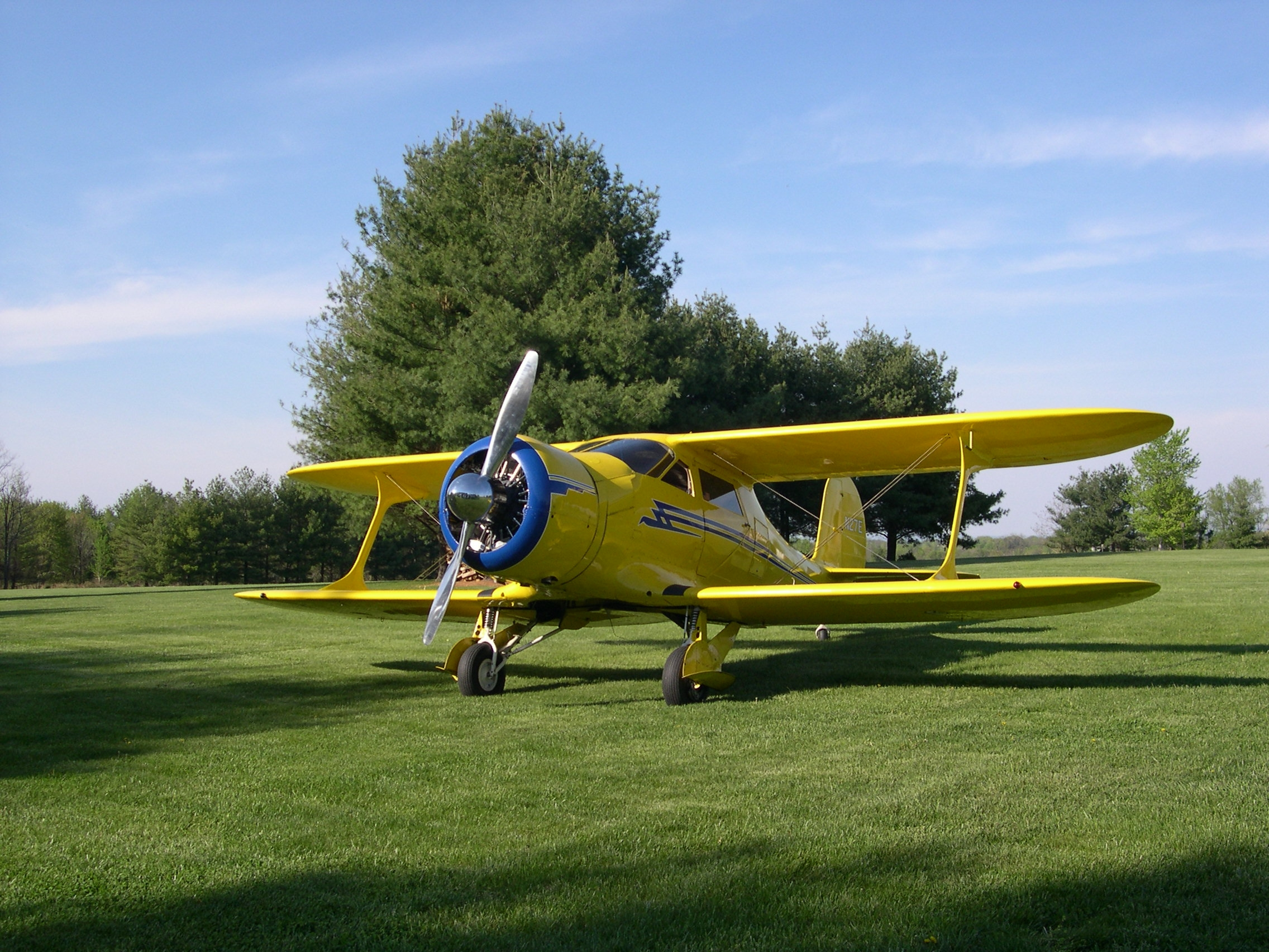 This Beech D17S Staggerwing (N27E) is one of several aircraft featured in a temporary outdoor display at the 2014 "Become A Pilot" family day at the Steven F. Udvar-Hazy Center, in Chantilly, VA.