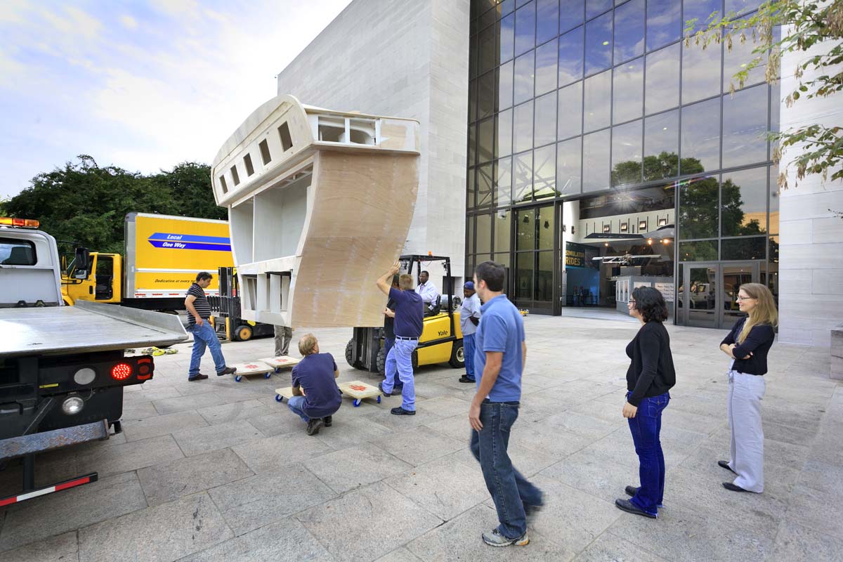 Ship display being moved into the National Air and Space Museum in Washington, DC to be installed in the Time and Navigation exhibition, opening in March 2013. The ship was fabricated by the Museum's Exhibits Production in Suitland, Maryland.