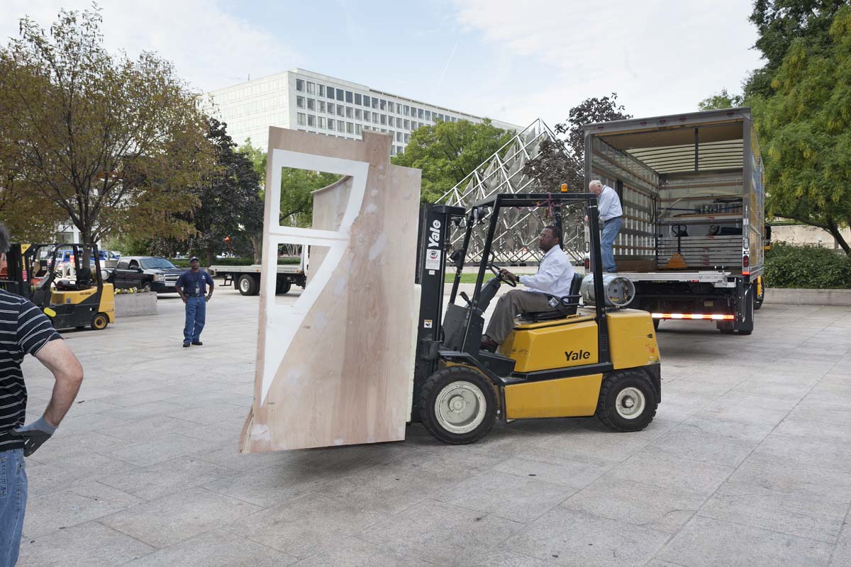 Ship display being moved into the National Air and Space Museum in Washington, DC to be installed in the Time and Navigation exhibition, opening in March 2013. The ship was fabricated by the Museum's Exhibits Production in Suitland, Maryland.