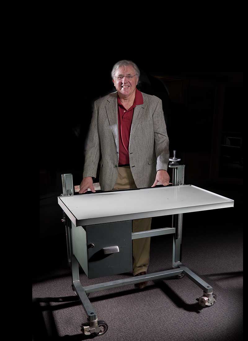 Von Hardesty is pictured with elevating table that was used, along with light table and optics, by CIA analysts to review U-2 photographs taken over Cuba in October of 1962. The photos were the first to confirm medium-range ballistic missile launch sites under construction in Cuba, and kicked off the most tense 13 days of the Cuban Missile Crisis.