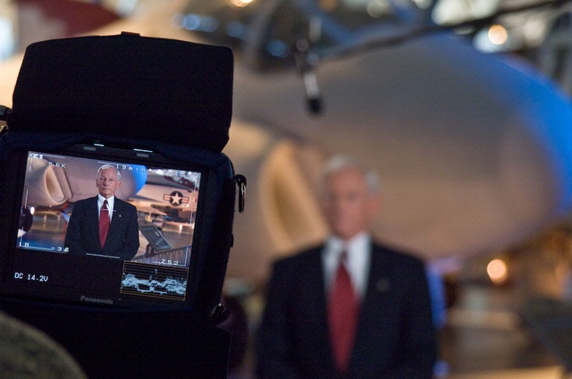 Smithsonian Networks shoots an interviews with National Air and Space Museum director, General John Dailey at the Steven F. Udvar-Hazy Center in Chantilly, Virginia.
