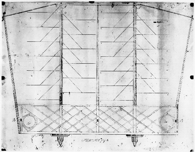 Drawing of the sectional view showing the mesh lattice construction, similar to the British Vickers Wellington Bomber.