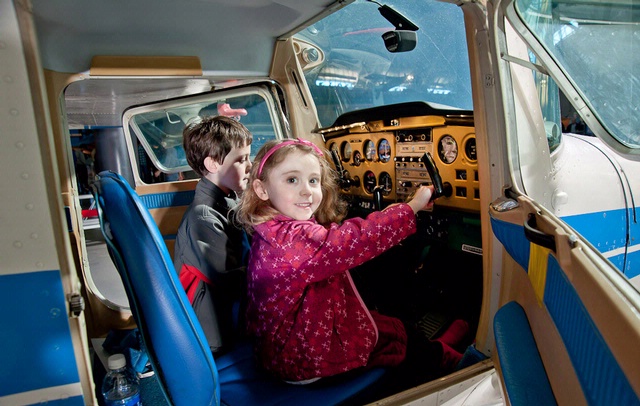 Two youngsters discover what it's like to be the pilots of a Cessna airplane at the Udvar-Hazy Center's annual African American Pioneers in Aviation Family Day on February 25, 2012.