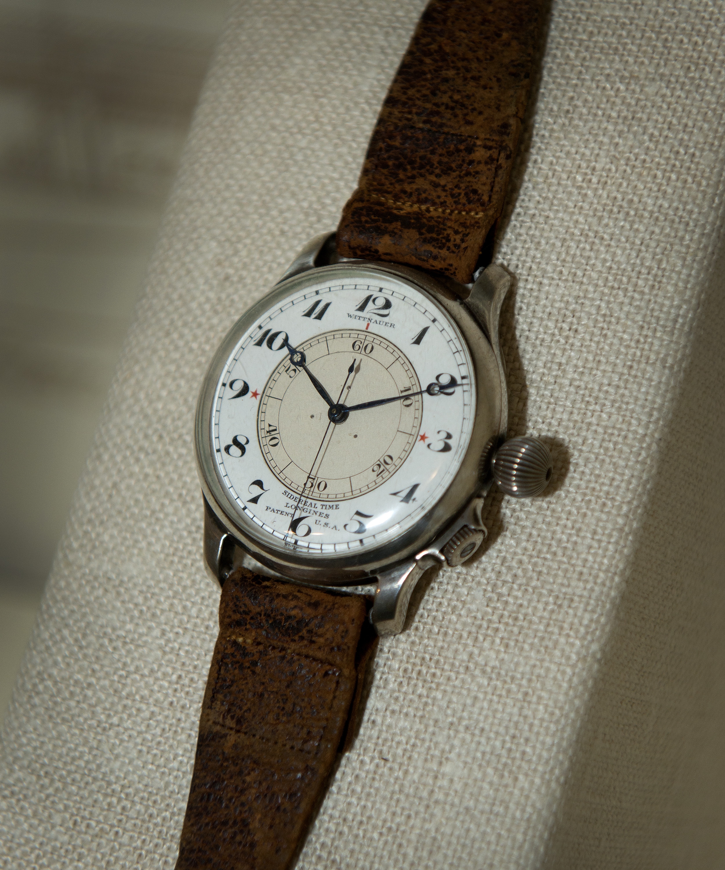 Before 1927, watches used with sextants for celestial sightings could only be set to the minute. A watch error of 30 seconds caused a navigational error of up to 12 kilometers (7 miles). In 1927, P. V. H. Weems devised a watch with an adjustable second hand that could be set using radio time signals. This was one of his personal navigation watches. Sidereal refers to the watch running on a celestial day (about 23 hours, 56 minutes), rather than the 24 hour solar day. This object will be part of the Time and Navigation exhibit opening in April 2013.