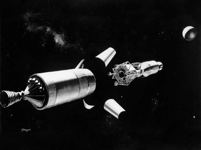 Once the spacecraft were on their trajectory toward the Moon, the CM (command module) pulled the LM (lunar module) from its compartment, and the two traveled together until they orbited the Moon.