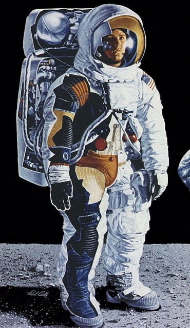 Cutaway diagram of the Apollo A7L Model Spacesuit, showing the complex interior of the suit. This model was worn my Apollo 11 astronauts Armstrong and Aldrin during their EVA (extra-vehicular activity) on the moon in July 1969.