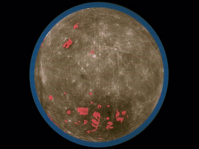 Basalt (shown in pink) is not distributed uniformly over the Moon. Nearly 26% of the near side of the Moon is basalt and only 2% of the far side is basalt.