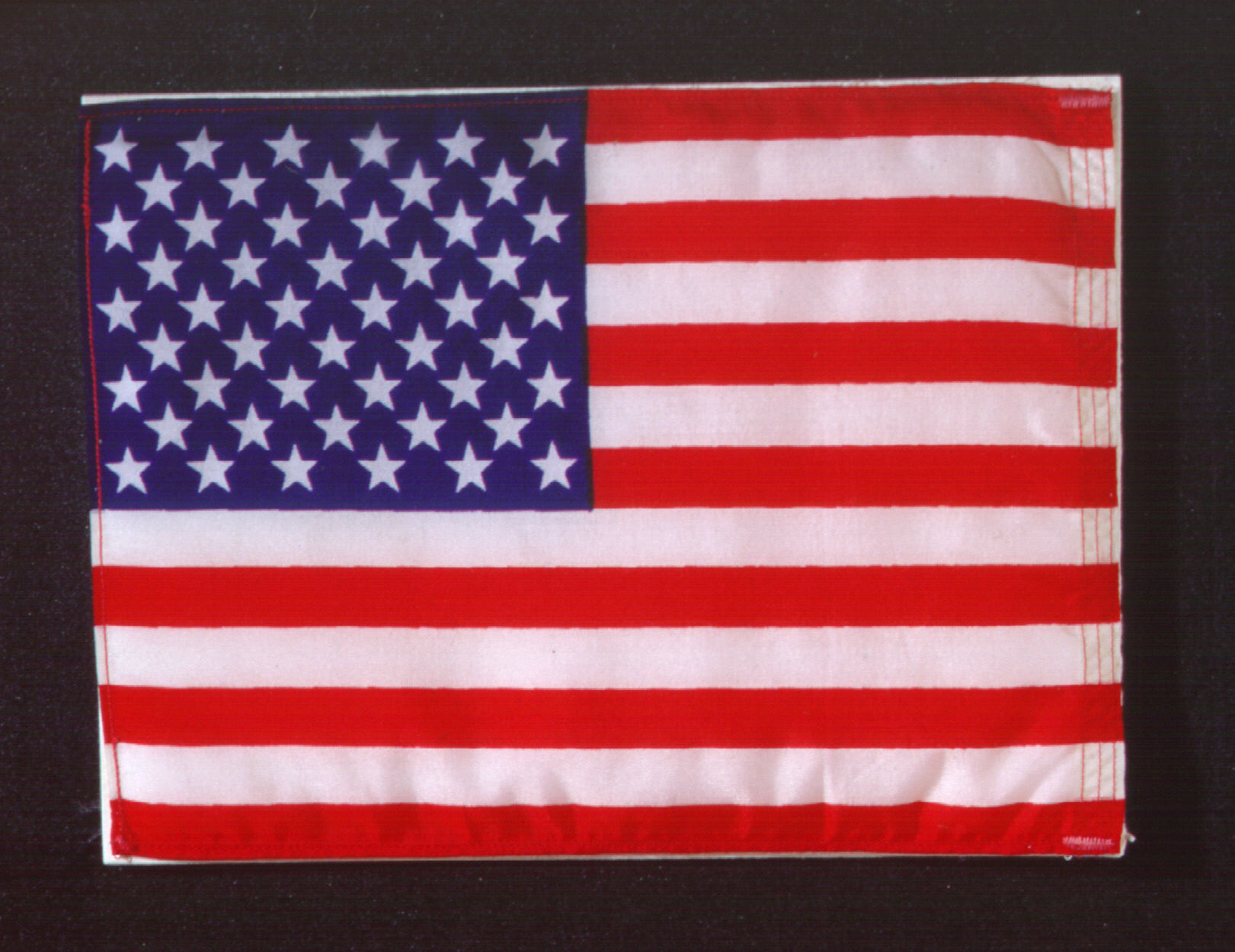 The Apollo Soyuz Test Project flight took place in July 1975. Three U.S. astronauts gave this flag with two Soviet cosmonauts as a symbol of the first international manned space venture.