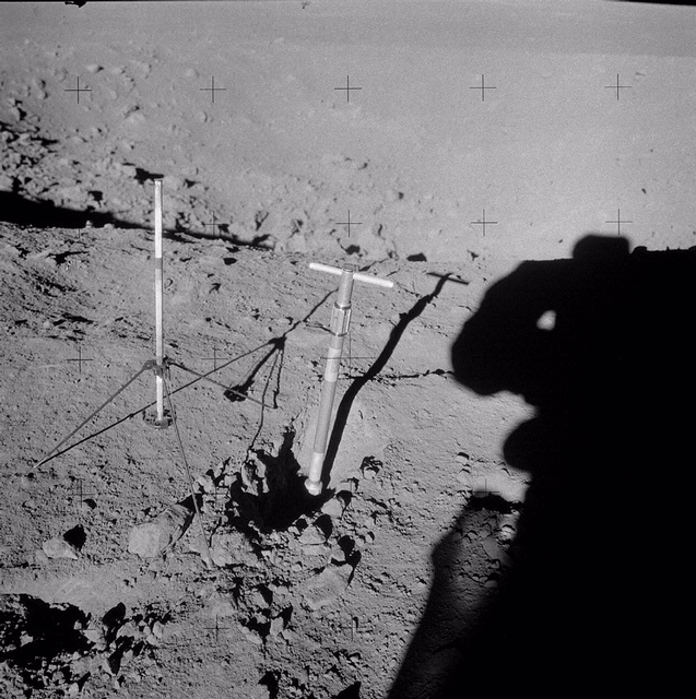 Gnomon / core sample in Sharp Crater trench, Apollo 12.