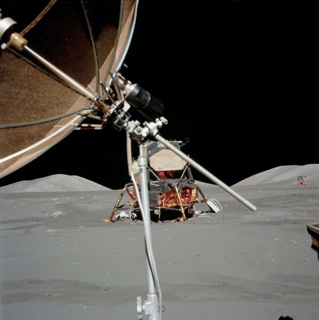 Apollo 17 Lunar Module viewed from the Lunar Roving Vehicle.