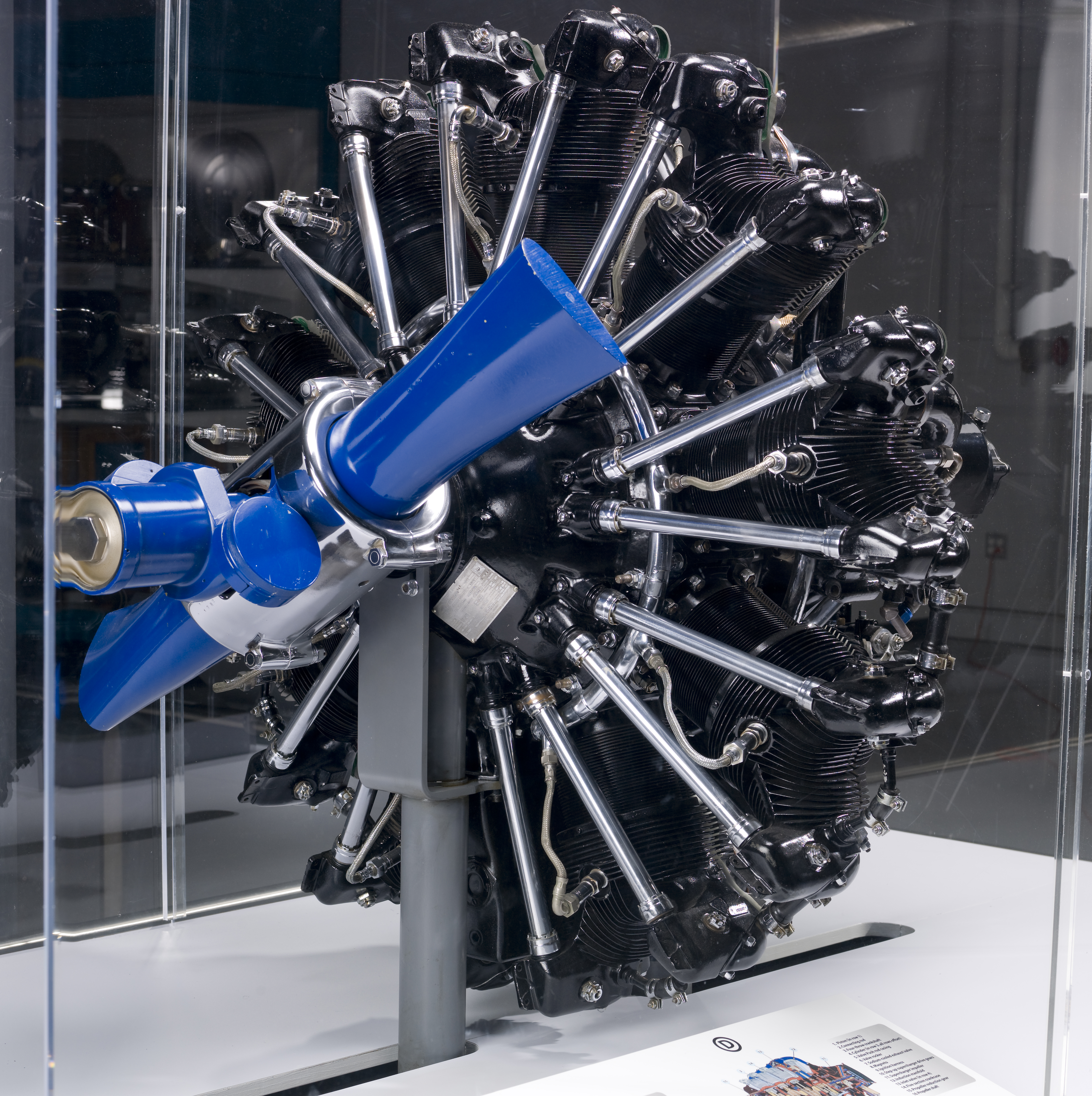 Wasp Jr. engine on display at the Udvar-Hazy Center. Aptly nicknamed "The Dancing Engine," it has been sectionalized and motorized to demonstrate the movements of its internal components.