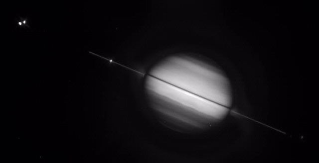 Saturn's rings are seen edge-on from Earth every 15 years, and thus seem to disappear.