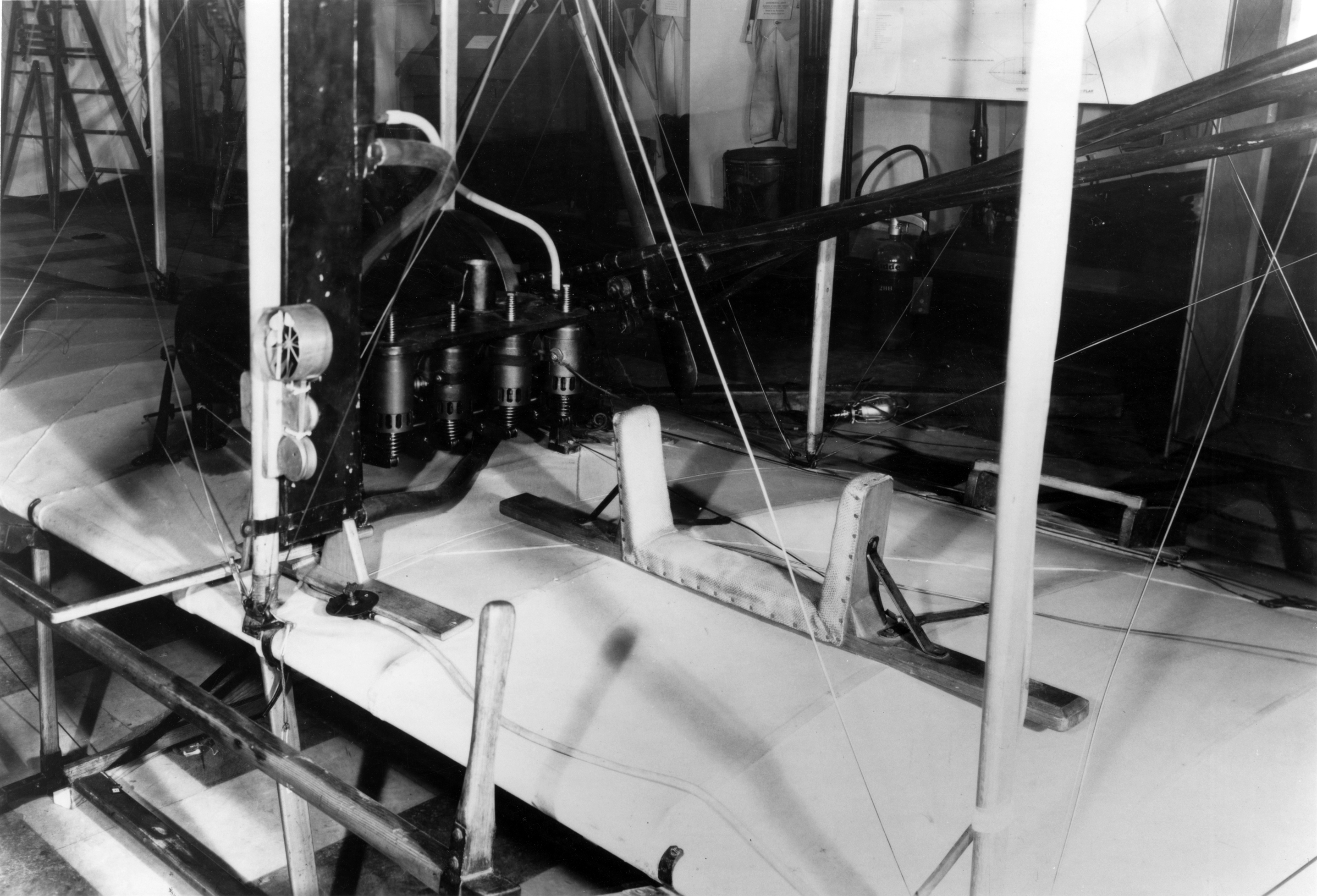 A small complement of instruments, mounted near the flight controls recorded flight data on the 1903 Flyer.