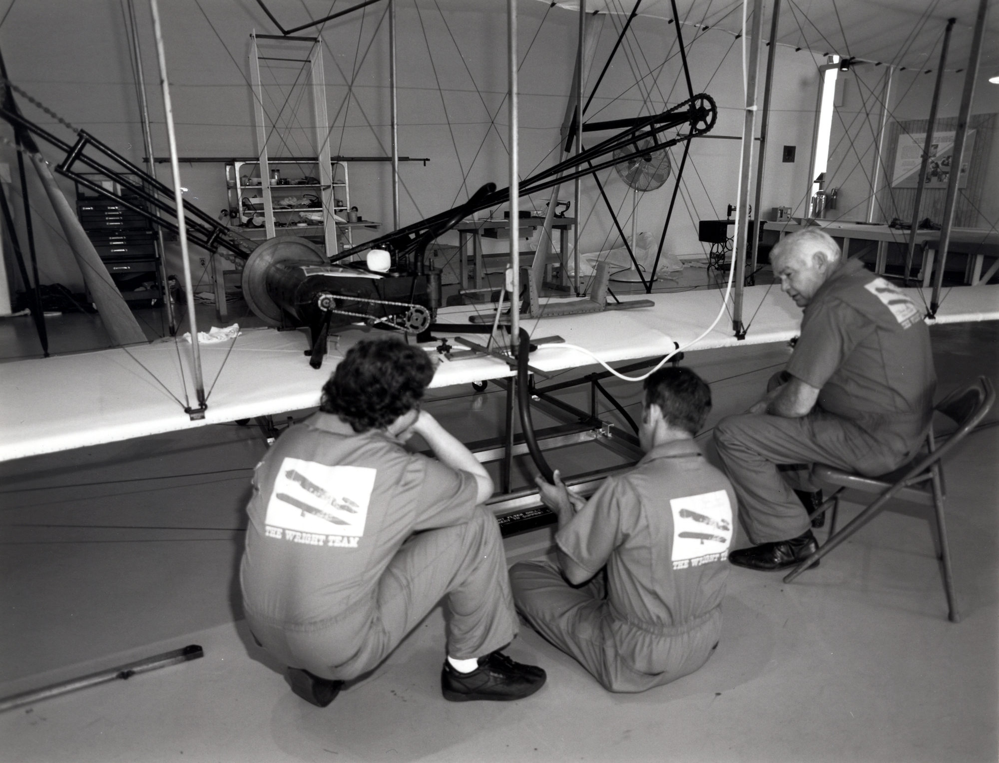 The Wright Flyer being restored on public view in the NASM, 1984-85.