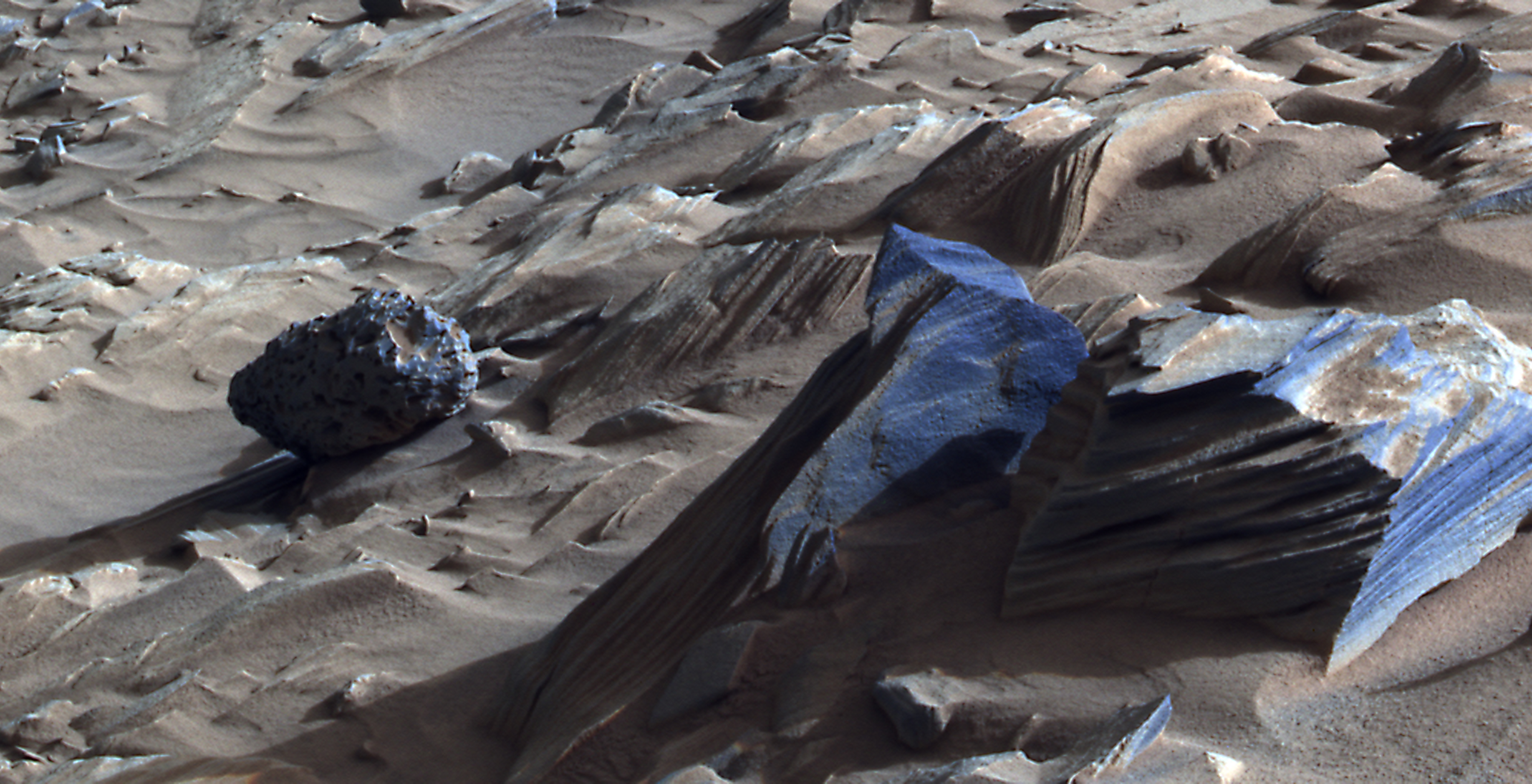 While traversing on and around the ancient volcanic feature called Home Plate, Spirit took many images of finely layered and more frothy looking volcanic rocks. Several lovely examples of these rocks appear here bathed in late-afternoon light.