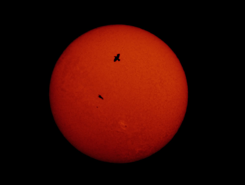 While museum educators were capturing this image of the Sun at the Public Observatory, birds flew in front of the telescope.