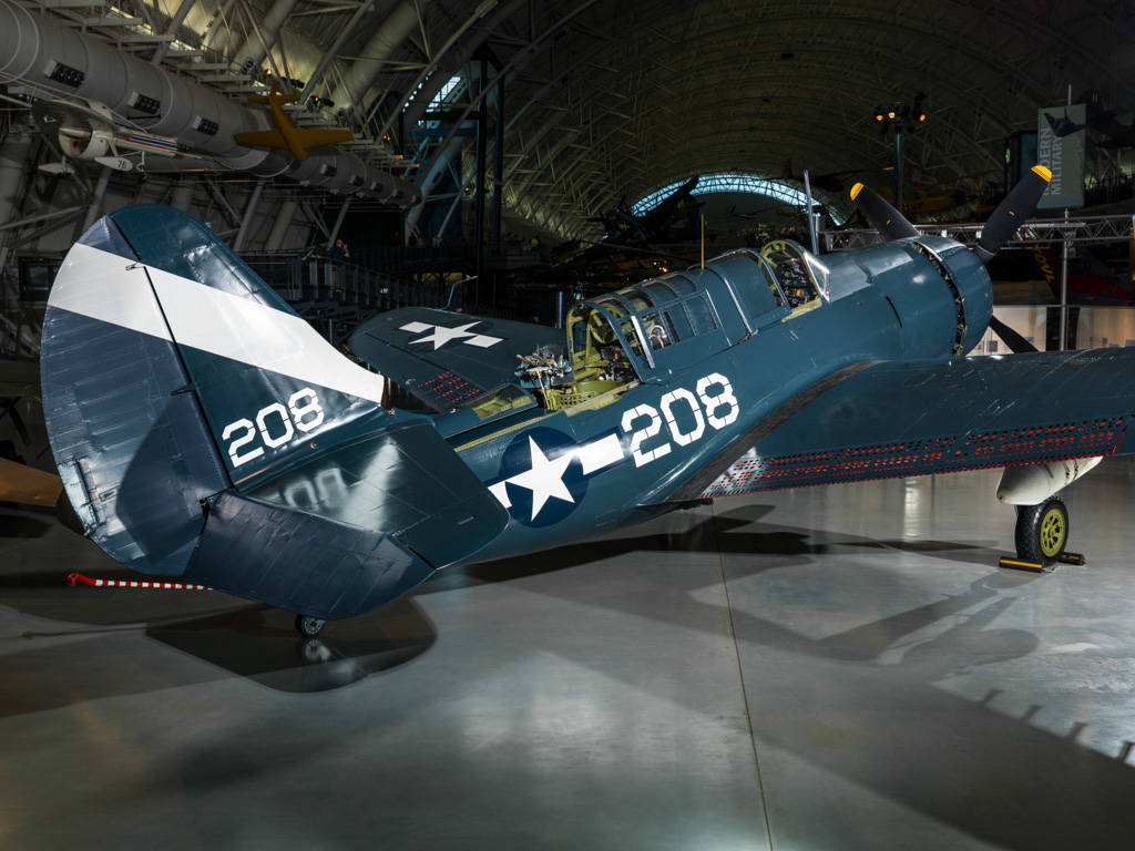 The Curtiss SB2C-5 Helldiver was the first plane to be fully restored in the Mary Baker Engen Restoration Hangar at the Steven F. Udvar-Hazy Center. It is now on display in the Boeing Aviation Hangar.
