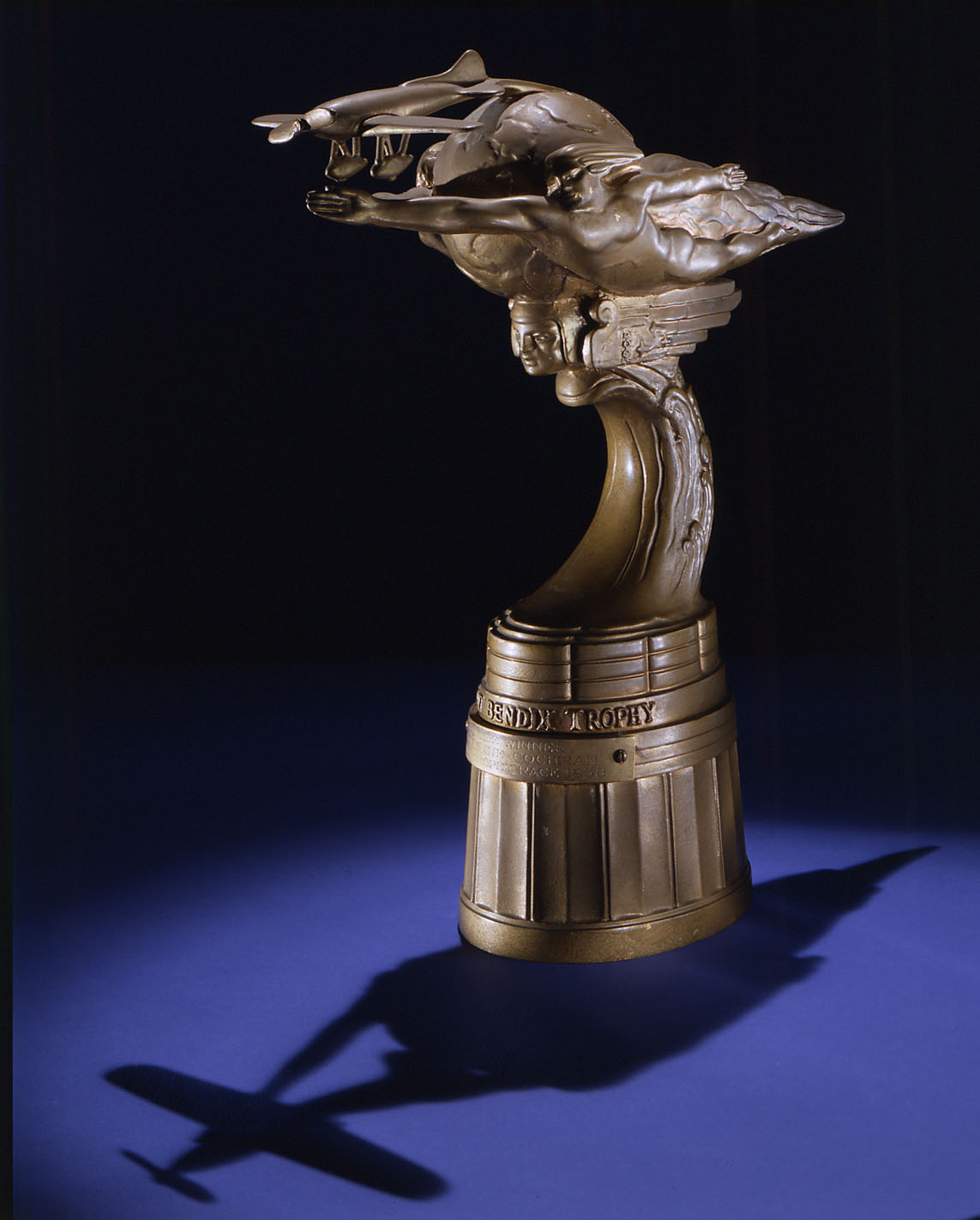 Aeronautical and automotive manufacturer Vincent Bendix established the Bendix Trophy for long-distance racing in 1931. Jimmy Doolittle received this presentation version of the trophy for his victory in the inaugural race. The Bendix Trophy is on display in the Museum’s Golden Age of Flight gallery.