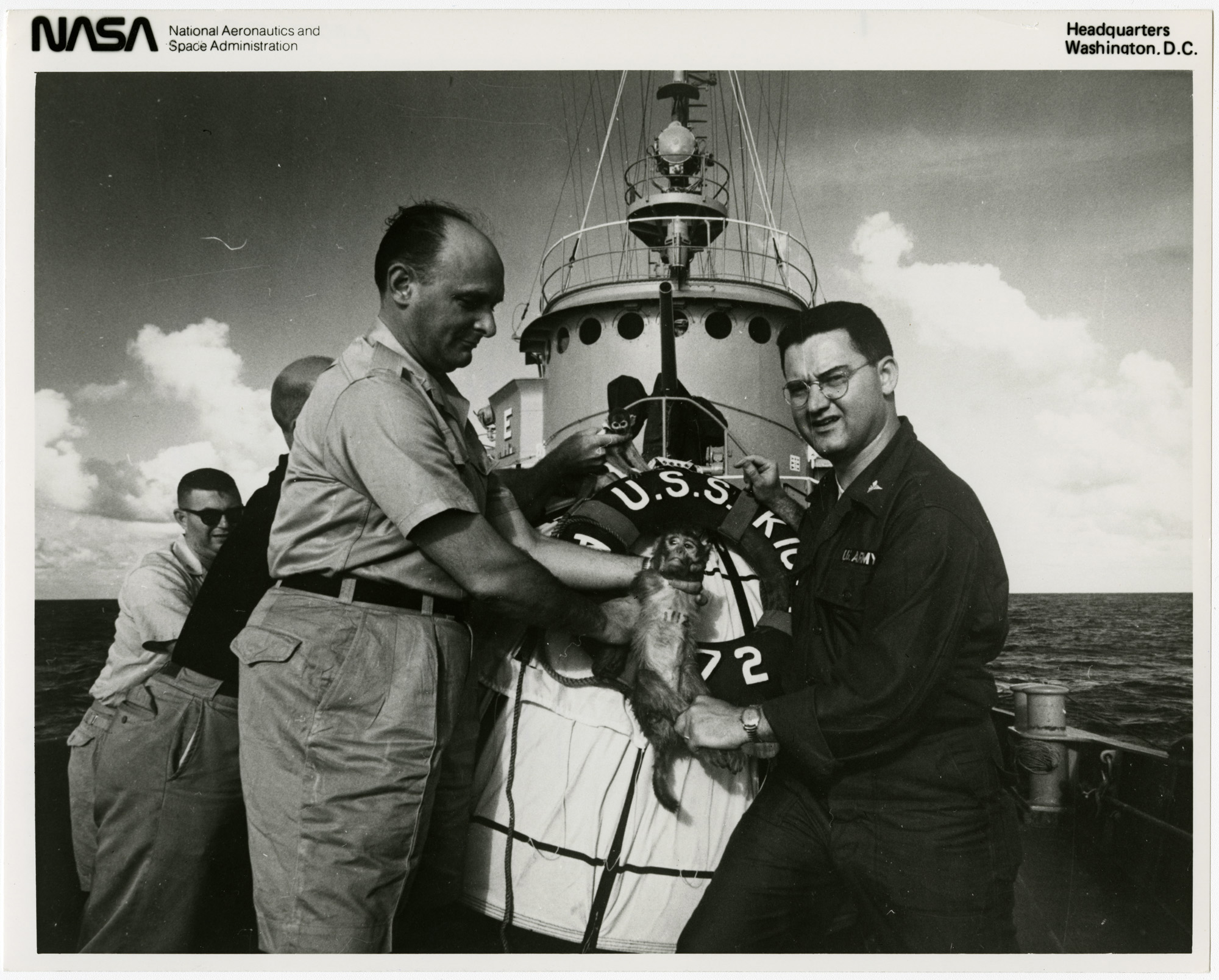 Able and Baker being shown off aboard the USS Kiowa after their space flight.