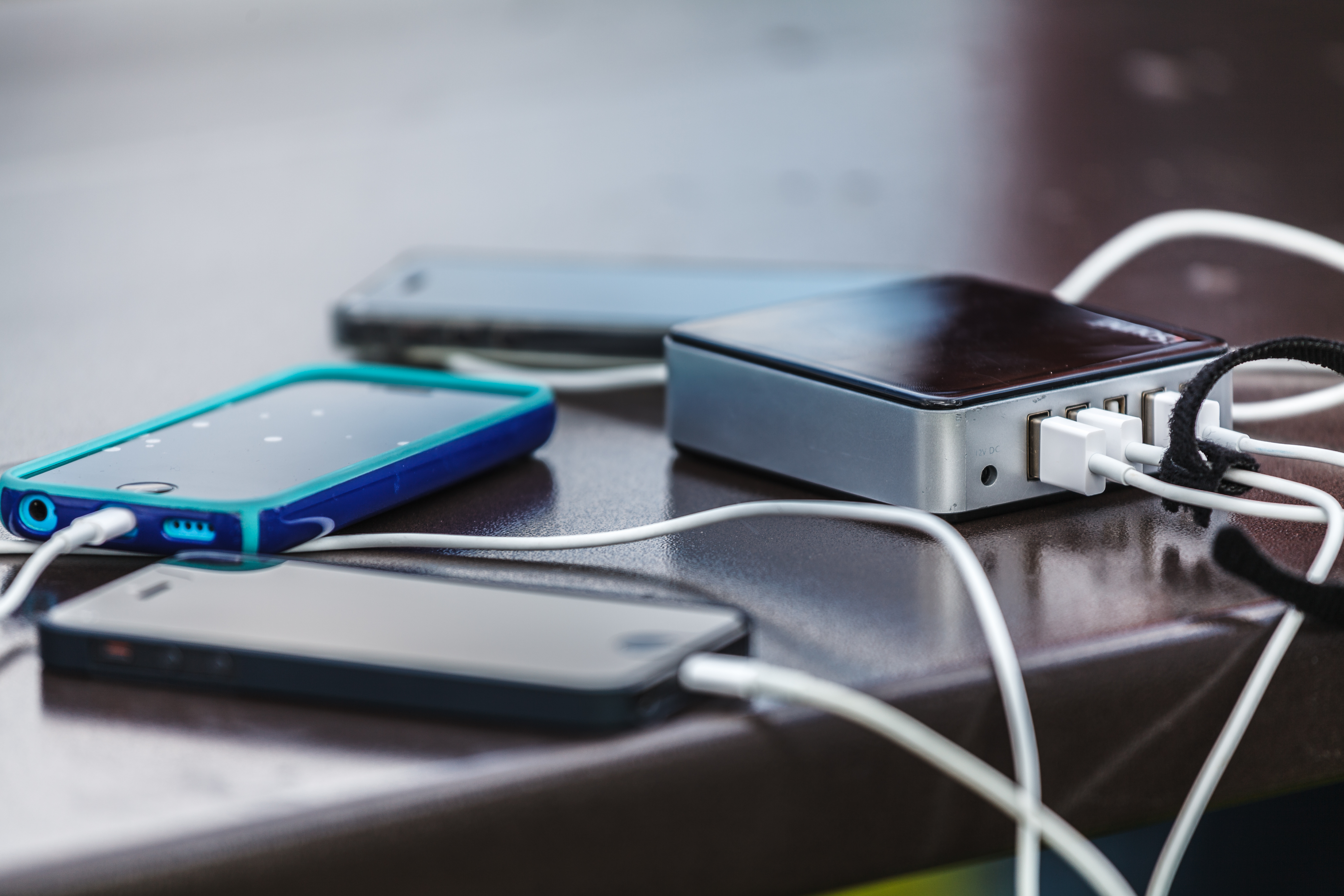 Devices charging at the Become a Pilot Day 2014 Social at the Udvar-Hazy Center in Chantilly, VA.
