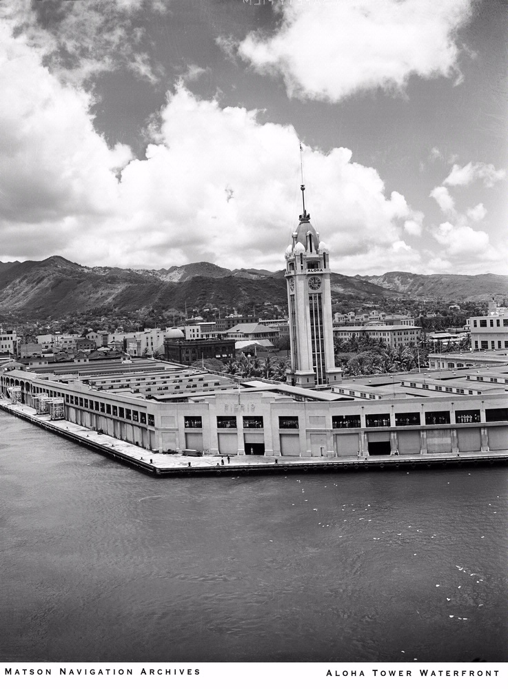 The Aloha Tower was built at Honolulu Harbor in 1926 as a symbolic greeting to arriving steamship passengers.