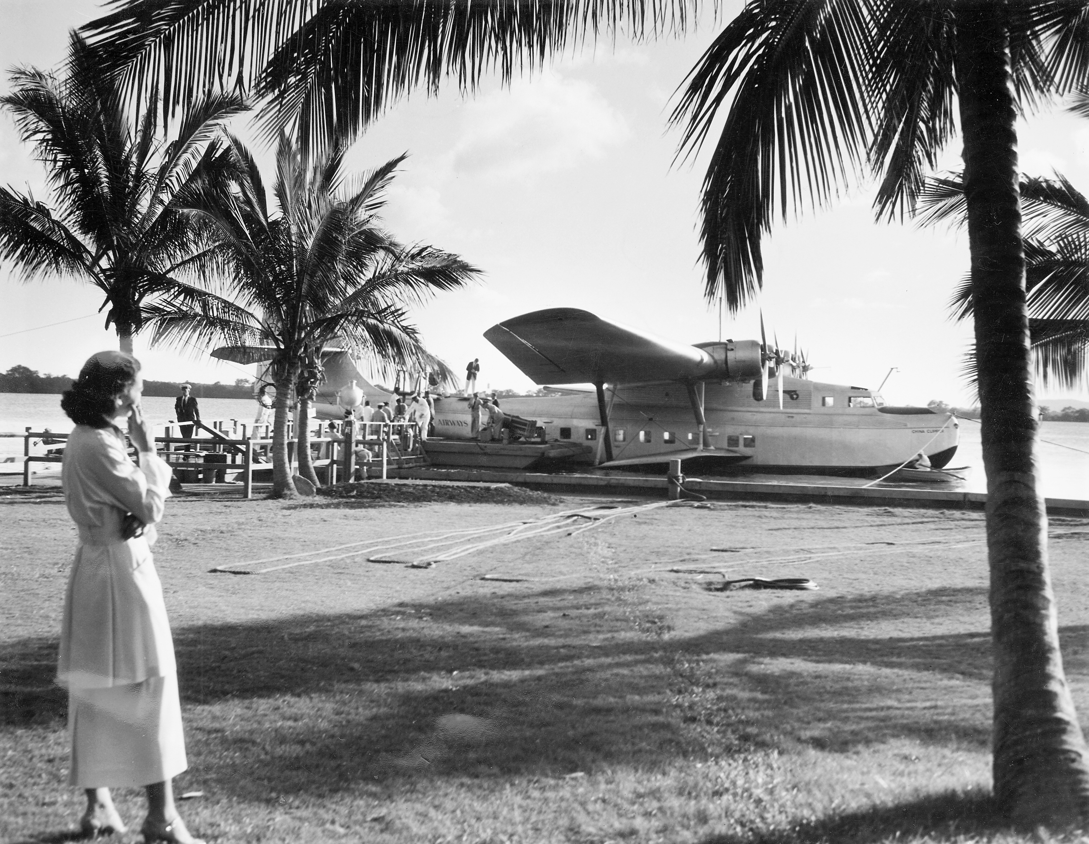 Pan Am's China Clipper at rest in Hawaii—the famous symbol of a new era in air travel history.