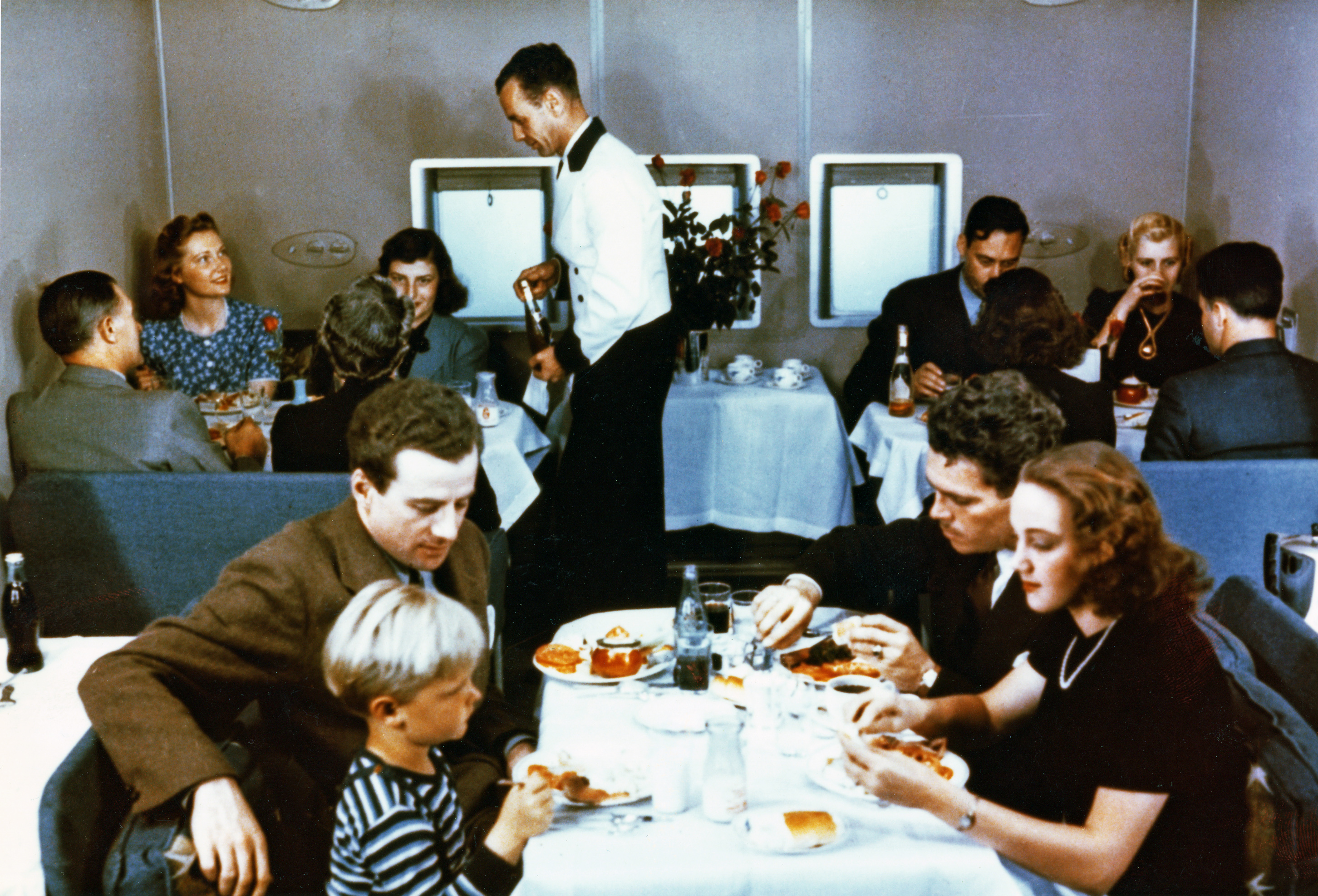 The lounge on Pan Am's Boeing 314 transformed into a dining room at mealtime.