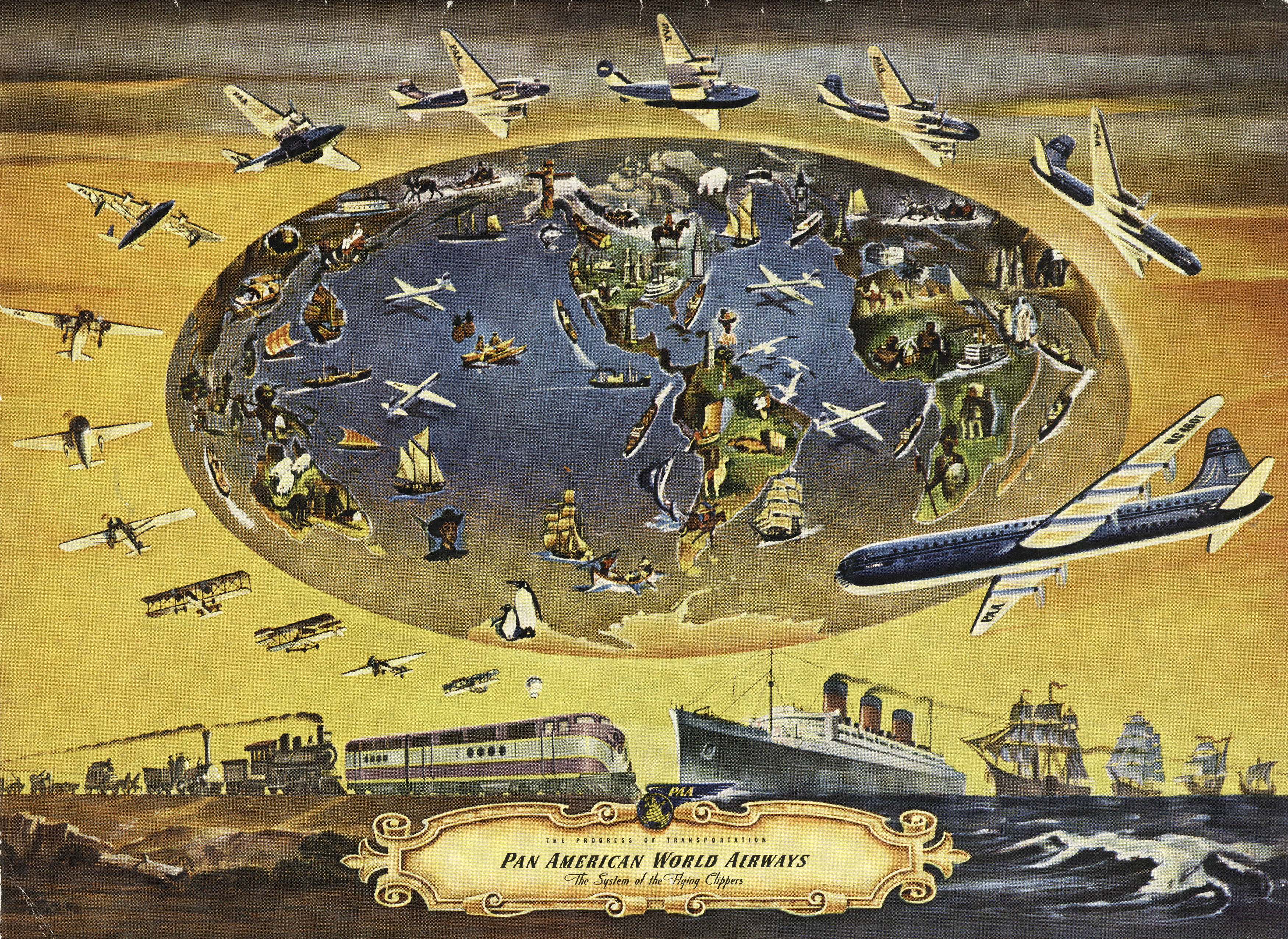 Pan Am presents itself as central to "The Progress of Transportation" in this 1946 image.