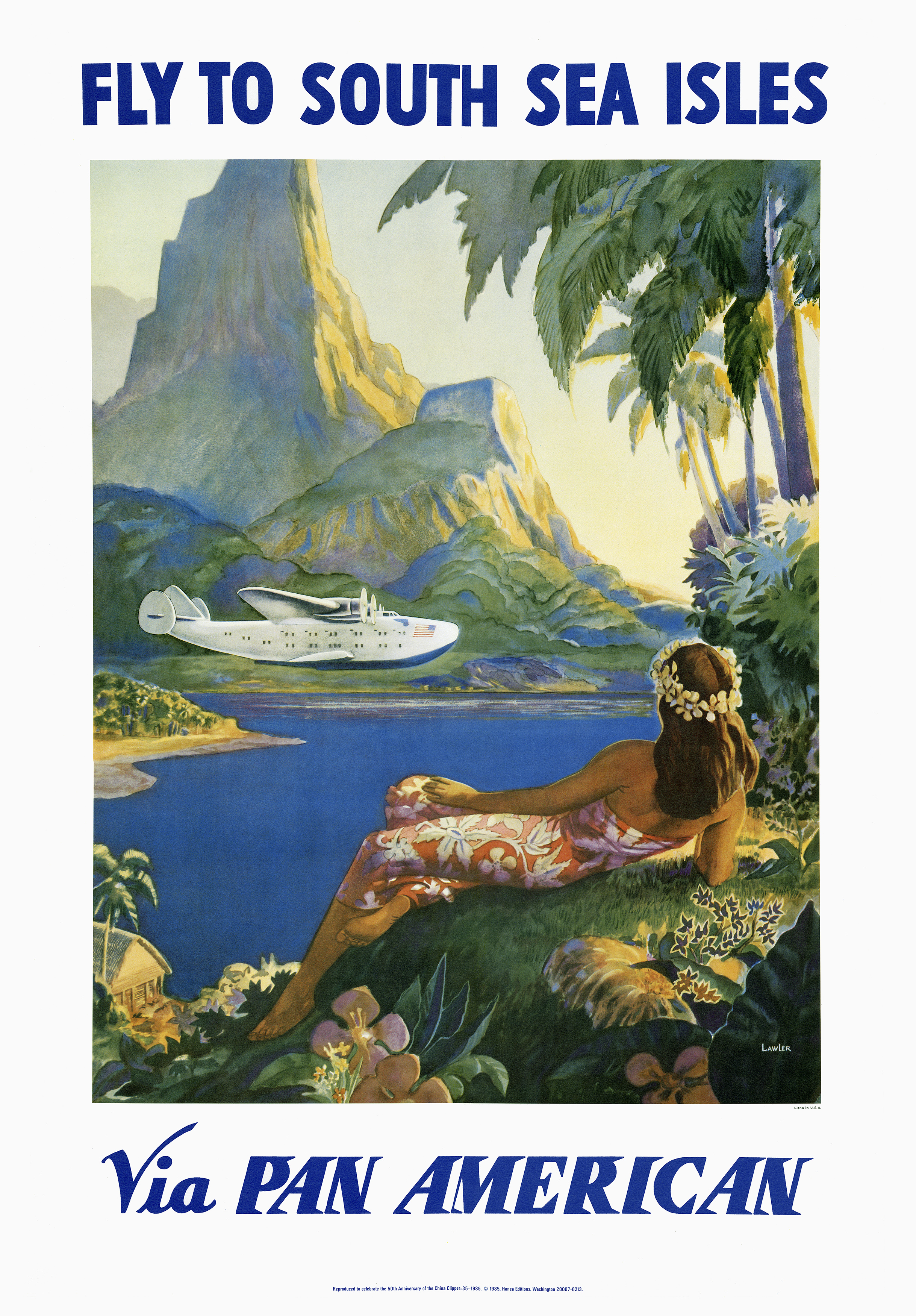 Pan American Airways "Fly to South Sea Isles" travel poster.