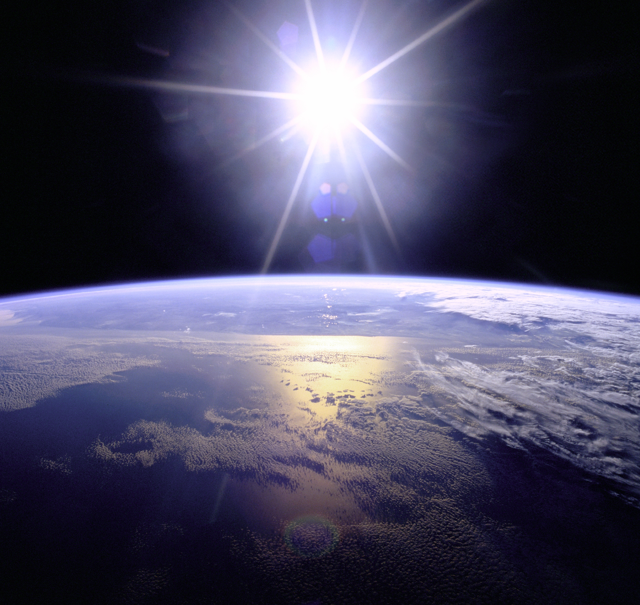 Image of the sun reflecting on earth.