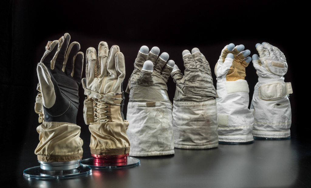 Gloves worn by White during Gemini IV, Cernan during Apollo 17, and Sullivan during STS 41-G.