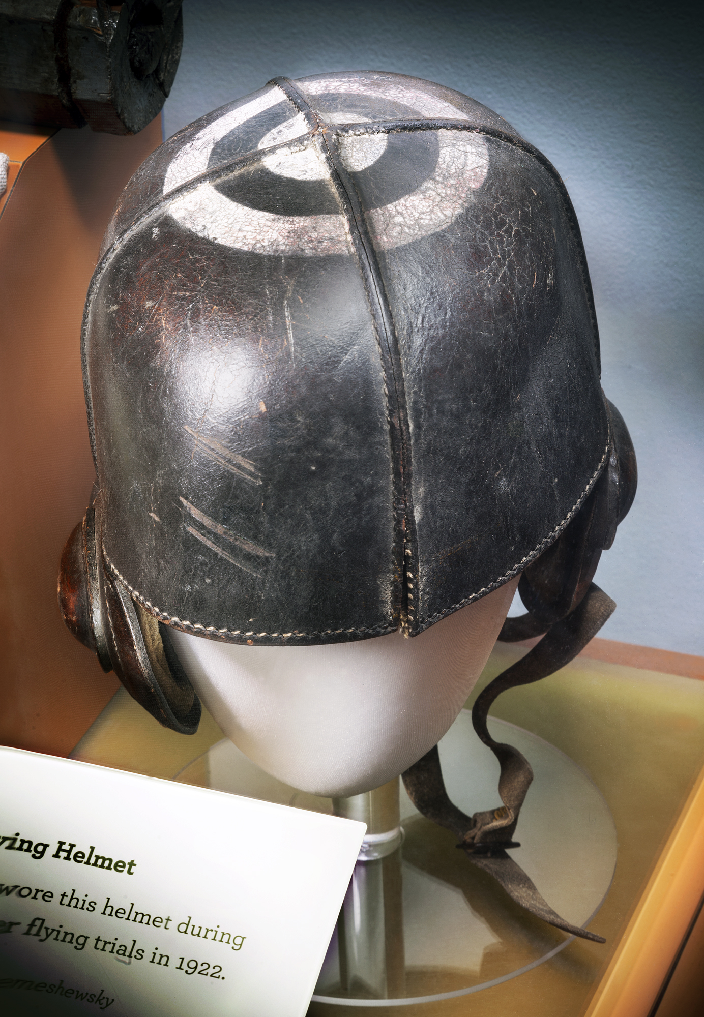 Alfred M. Pride wore this helmet during the Langley carrier flying trials in 1922.