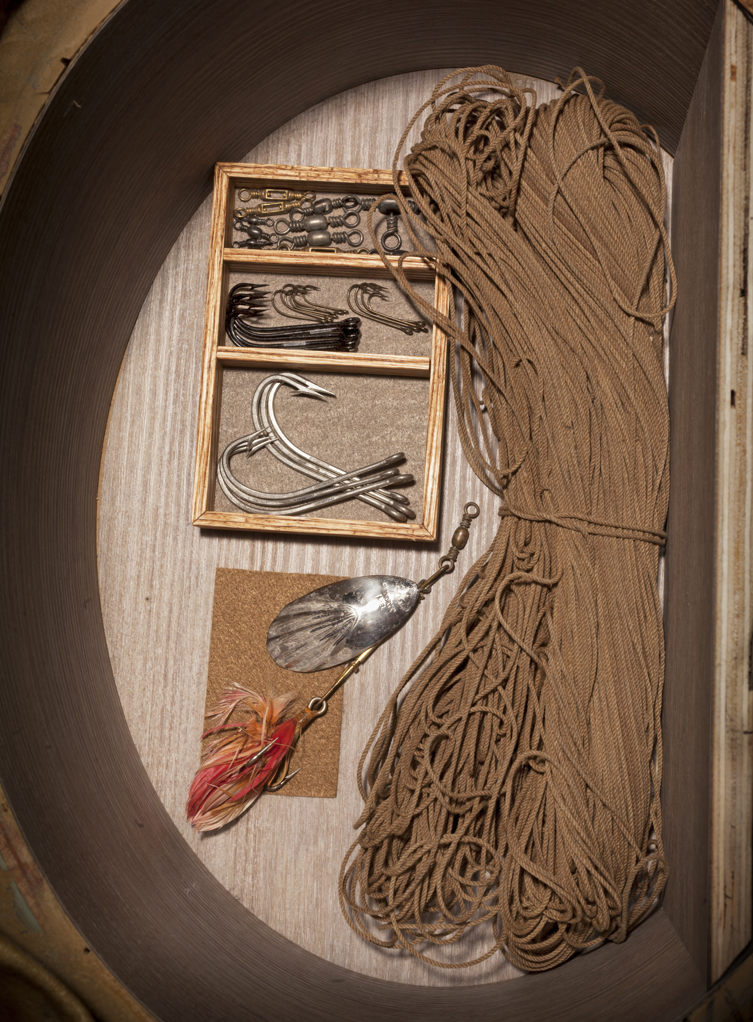 These items are all used for catching fish. Hooks, lures, and nets were important equipment. If the Lindberghs had to make an emergency landing while flying over water, they could catch their dinner using this gear.