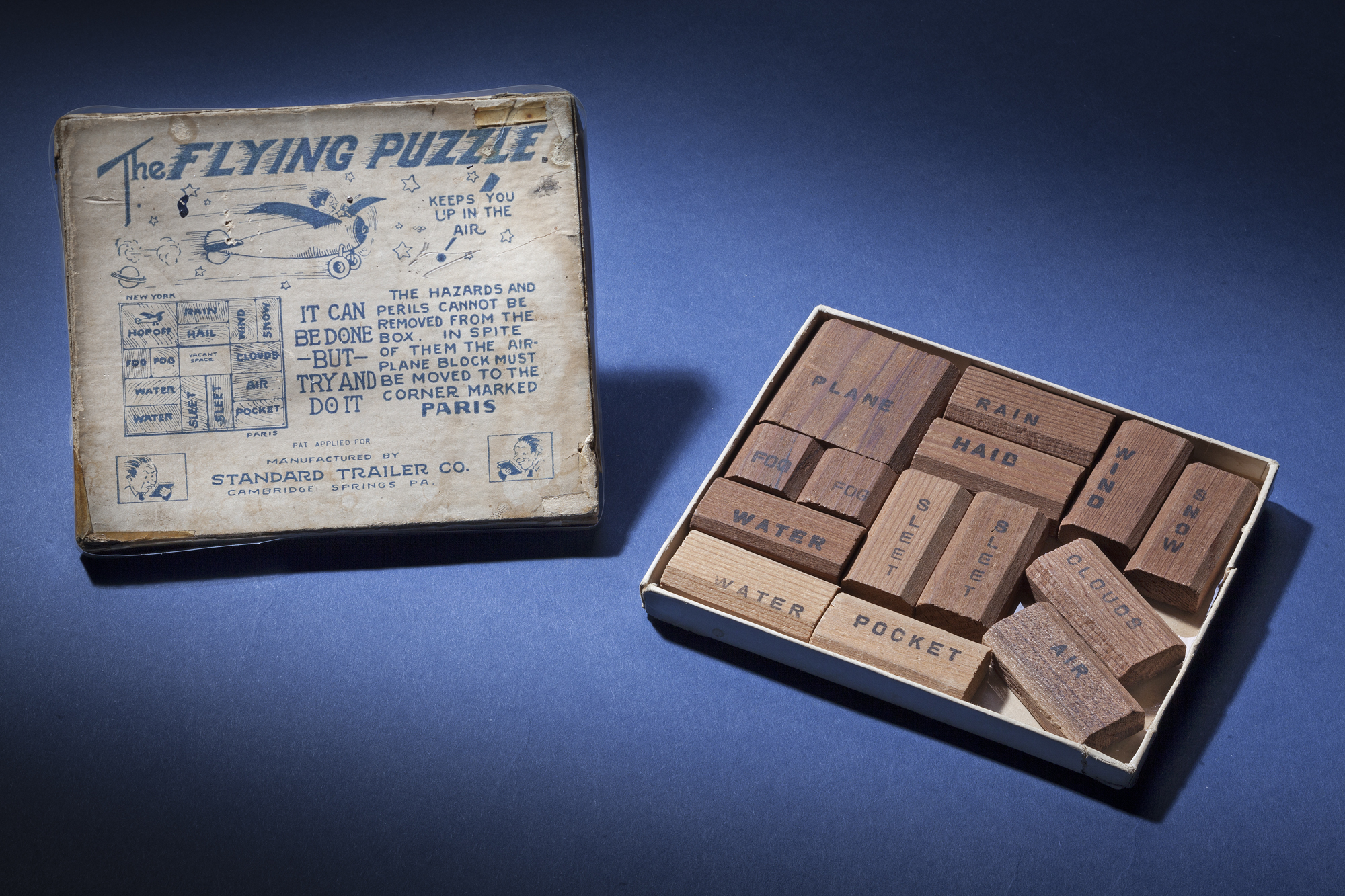 This wooden puzzle game presents challenges to the player on a "flight" from New York to Paris.