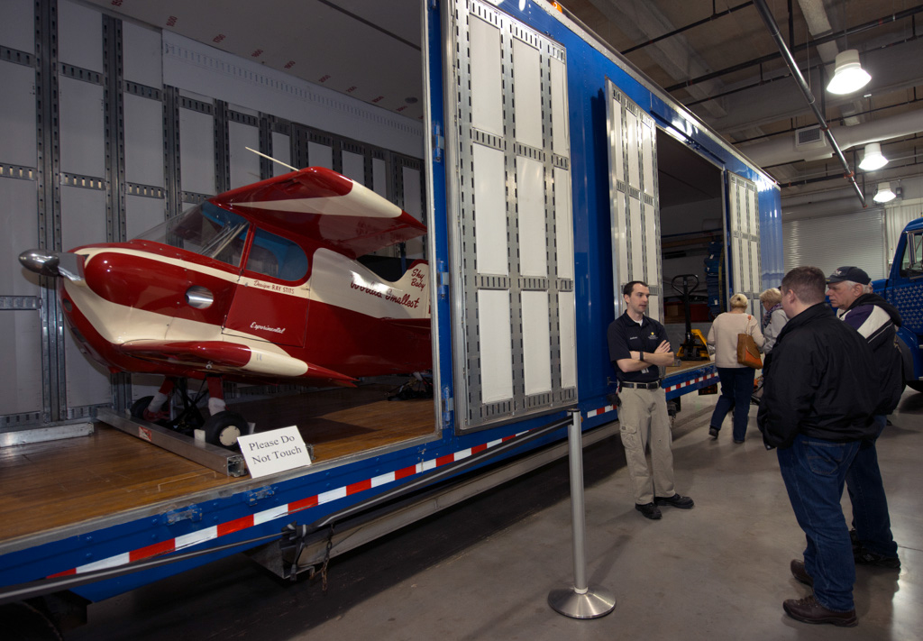 Anthony Wallace, of the Museum's Collections Processing Unit, shares with visitors how artifacts are moved at the 2014 Udvar-Hazy Center Open House.