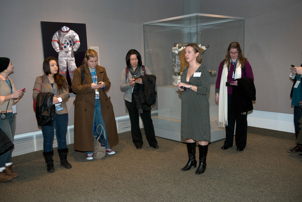 Dr. Jennifer Levasseur, curator of Outside the Spacecraft: 50 Years of Extra-Vehicular Activity, gave a tour to the Social participants.