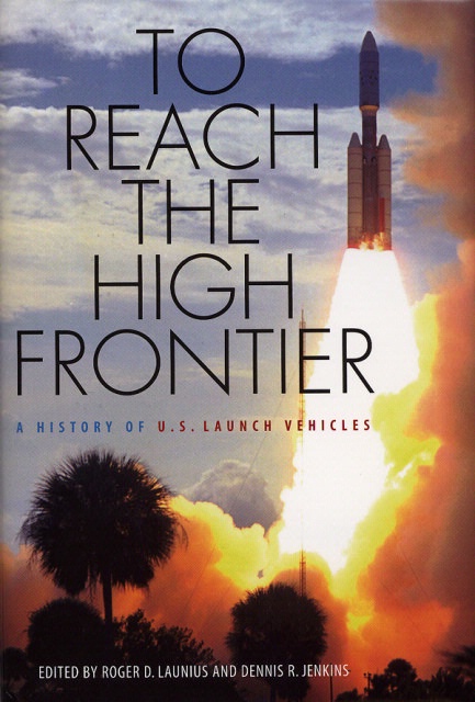 Cover art for To Reach the High Frontier: A History of U.S. Launch Vehicles edited by Roger D. Launius and Dennis R. Jenkins.