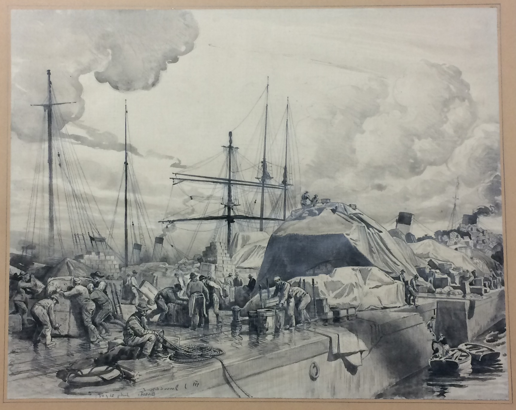 The Docks at Brest by Walter Jack Duncan, Pen and ink wash on paper, July 21, 1918