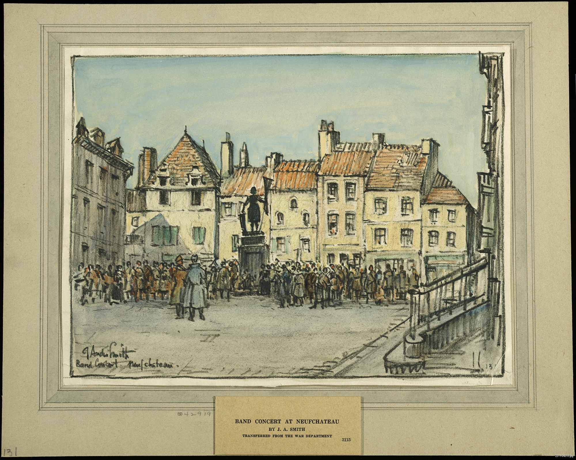 Band Concert at Neufchateau by J. André Smith, Watercolor and charcoal on paper, 1918